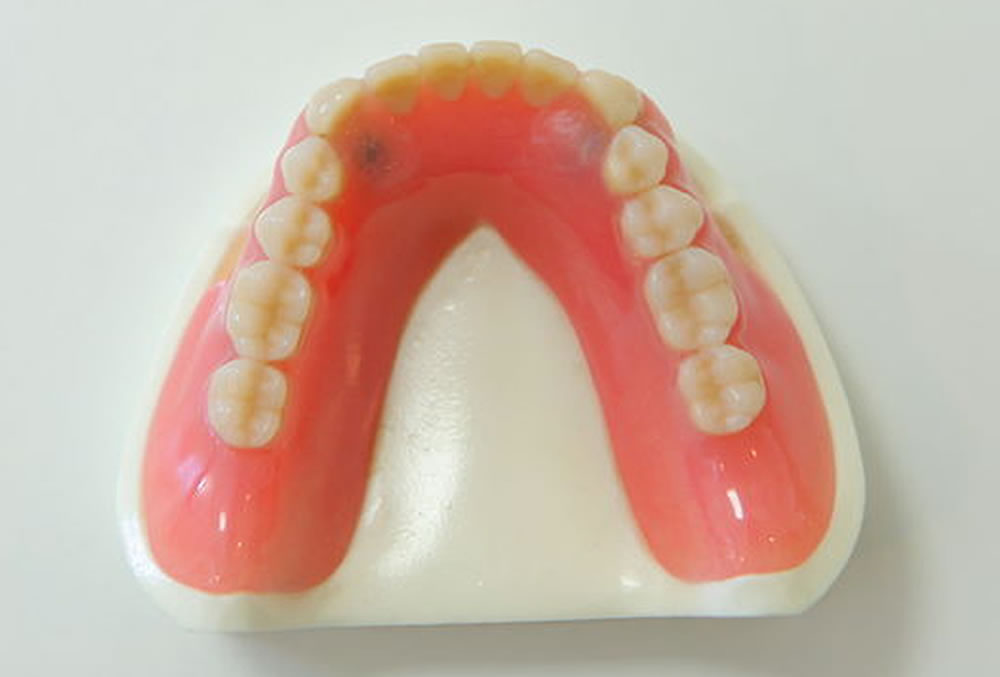 保険が適用できるのが利点です。歯肉や顎の骨が痩せてしまう場合があります。発音、噛み心地などしっくりせず異物感があることが多く、何回か調整が必要となります。 |